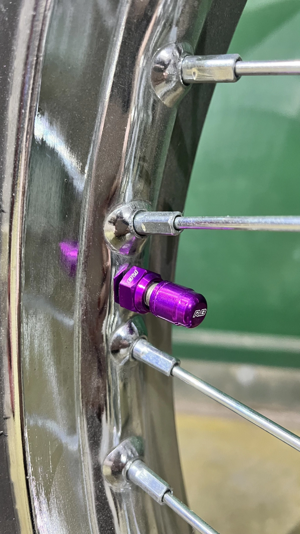 Incluye: 2 Tuercas valvula de aire + 2 Tapones de Valvula de Aire, para una (1) moto.